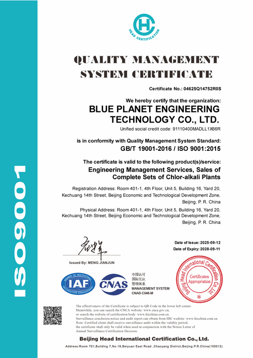 Мы БПЦ (BLUE PLANET ENGINEERING TECHNOLOGY CO., LTD), глобальная инжиниринговая компания, которая объединяет инжиниринг, технологии, сервис и международную торговлю. Мы концентрируемся на предоставлении комплексных решений для хлорщелочных заводов, технологий поддержки вверх и вниз по течению, а также генерального подряда EPC. Мы являемся лидером китая по зарубежному маркетингу и продажам, а также платформой для предоставления технологий и услуг для глобальных хлорщелочных клиентов.